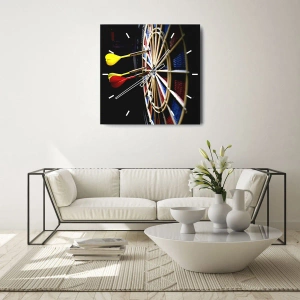 Horloge murale - Pendule murale - Un jeu de fléchettes avec des fléchettes frappées sur un fond noir - 30x30cm - Droit au but - Décoration murale moderne pour le salon et la chambre ARTTOR