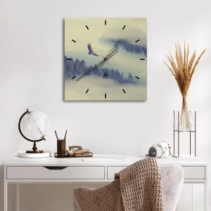 Horloge murale - Pendule murale - Un aigle en vol sur fond de montagnes brumeuses avec un motif circulaire artistique - 30x30cm - J'ai vu l'ombre d'un aigle - Décoration murale moderne pour le salon et la chambre ARTTOR