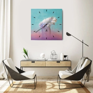 Fleur, Blanc, Violet, Pastel, Rose - ces nuances subtiles créent une composition étonnante, où la fleur s'immerge dans les couleurs fluides de l'eau. L'horloge en verre de 30 x 30 cm attire le regard par ses tons élégants.