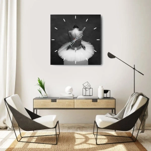 Horloge murale - Just Blooming - Danseuse en jupe de tulle assise à l'envers, noir et blanc