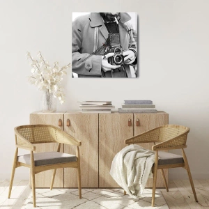 L'image de l'horloge attire l'attention par ses détails : la texture du tissu du manteau, le cadre expressif et les détails parfaitement reproduits de l'appareil photo. La composition évoque l'atmosphère d'antan, tout en apportant une touche de minimalisme moderne à l'intérieur. C'est la proposition idéale pour ceux qui apprécient l'alliance du classique et du moderne, et pour ceux pour qui la photographie est plus qu'un simple hobby.