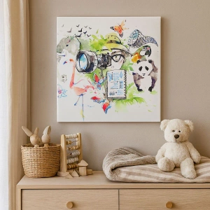 Impression sur toile - Image sur toile - Des graphismes colorés sur le thème de la nature et du safari - 50x70cm - Dans l'objectif d'un voyageu - Décoration murale moderne pour le salon et la chambre ARTTOR