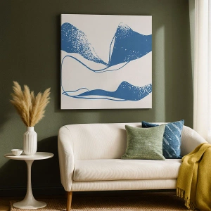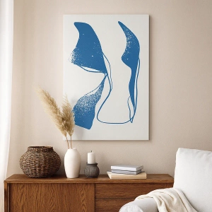 Impression sur toile - Image sur toile - Formes abstraites dans des tons bleus sur fond blanc - 50x70cm - Abstraction ailée - Décoration murale moderne pour le salon et la chambre ARTTOR