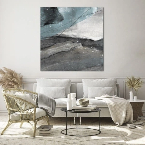 Impression sur verre - Image sur verre - Une représentation abstraite de roches et de glace dans une palette de couleurs froides. - 70x50cm - Résumé : roches et glace - Décoration murale moderne pour le salon et la chambre ARTTOR