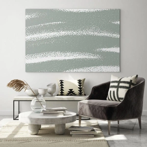 Impression sur verre - Image sur verre - Rayures blanches sur un fond vert frais - 50x70cm - Abstraction dans un climat hivernal - Décoration murale moderne pour le salon et la chambre ARTTOR