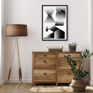 - Cette affiche moderne présente une composition abstraite de formes géométriques en noir et blanc. Son graphisme contrasté et dynamique est parfait pour les intérieurs minimalistes.