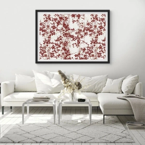 - Cette affiche présente de subtils accents floraux rouges sur un fond clair. Une composition artistique et minimaliste qui crée une atmosphère unique.