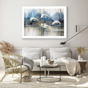 Affiche dans un cadre blanc - Poster - Comme dans un conte de fées sur les cygnes sauvages - 100x70 cm