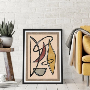 « Composition - Arches et Ovales » est une affiche extraordinaire qui allie formes géométriques et expression artistique. La composition abstraite aux tons chauds de beige, marron et or est soulignée par des lignes noires prononcées, qui confèrent à l'œuvre un rythme et une structure caractéristiques. Grâce à la texture claire et aux détails subtils, l'illustration gagne en profondeur et en style rétro unique.