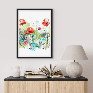 Affiche dans un cadre noir - Poster - Prairie de fleurs en mai - 30x30 cm