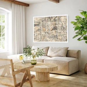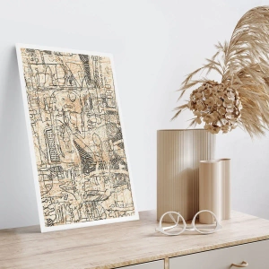 Affiche - Poster - Motif géométrique abstrait dans les tons beige et noir - 50x70cm - Il attend d'être décodé - Décoration murale moderne pour le salon et la chambre ARTTOR