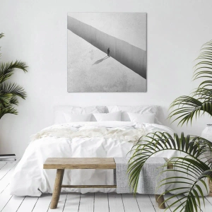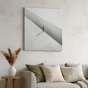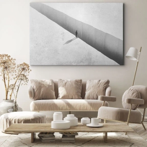 Impression sur toile - Image sur toile - Une silhouette solitaire se tient au-dessus d'un gouffre profond dans un décor monochrome. - 70x100cm - Un objectif clair - Décoration murale moderne pour le salon et la chambre ARTTOR