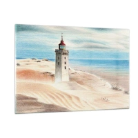 Impression sur verre - Image sur verre - Un phare sur une dune du désert au bord d'une mer calme - 120x80cm - Toujours regarder la mer - Décoration murale moderne pour le salon et la chambre ARTTOR