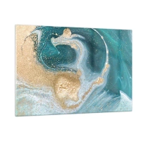 Impression sur verre - Image sur verre - De l'or sur des vagues turquoise dans un style abstrait - 120x80cm - Tourbillon d'or et de turquoise - Décoration murale moderne pour le salon et la chambre ARTTOR