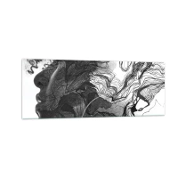 Impression sur verre - Image sur verre - Visage abstrait en noir et blanc avec des lignes dynamiques. - 140x50cm - Emmêlé dans les rêves - Décoration murale moderne pour le salon et la chambre ARTTOR