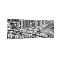 Impression sur verre - Image sur verre - Une vue plongeante sur Dubaï - 140x50cm - Dubaï - la ville impossible - Décoration murale moderne pour le salon et la chambre ARTTOR