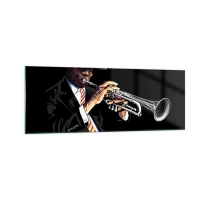 Impression sur verre - Image sur verre - Un musicien jouant de la trompette sur un fond noir - 140x50cm - Le charme de la vieille école - Décoration murale moderne pour le salon et la chambre ARTTOR