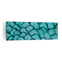 Impression sur toile - Image sur toile - Un motif ressemblant à des écailles turquoise avec des accents dorés - 160x50cm - Le grand gala des plumes - Décoration murale moderne pour le salon et la chambre ARTTOR