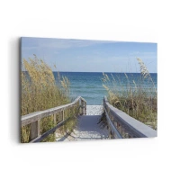 Impression sur toile - Image sur toile - Chemin vers la plage avec vue sur la mer - 120x80cm - Au soleil, sous le vent - Décoration murale moderne pour le salon et la chambre ARTTOR