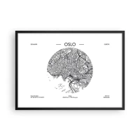 Affiche dans un cadre noir - Poster - Une carte d'Oslo dans un style minimaliste en noir et blanc. - 70x50cm - Anatomie d’Oslo - Décoration murale moderne pour le salon et la chambre ARTTOR