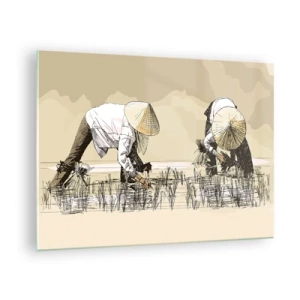 Impression sur verre - Image sur verre - Une illustration minimaliste d'agriculteurs travaillant - 70x50cm - Récolte réussie - Décoration murale moderne pour le salon et la chambre ARTTOR
