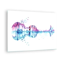 Impression sur verre - Image sur verre - Un paysage en forme de guitare dans un style aquarelle - 70x50cm - Je vous apporterai de cantiques de pluie - Décoration murale moderne pour le salon et la chambre ARTTOR