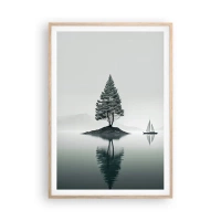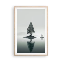 Affiche dans un cadre noir - Poster - Un arbre solitaire sur une île avec un reflet dans l'eau - 50x70cm - Un rêve somnolent - Décoration murale moderne pour le salon et la chambre ARTTOR