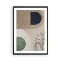 Affiche dans un cadre noir - Poster - Abstraction géométrique dans les tons beige, vert et noir - 50x70cm - La douceur de l'ovale - Décoration murale moderne pour le salon et la chambre ARTTOR