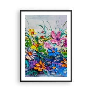 Affiche dans un cadre noir - Poster - Une composition florale peinte avec une texture épaisse et des couleurs vives - 50x70cm - Absolument pas une nature morte - Décoration murale moderne pour le salon et la chambre ARTTOR