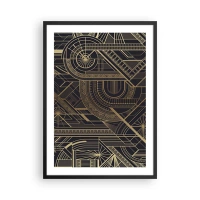 Affiche dans un cadre noir - Poster - Motif géométrique dans des tons dorés sur fond noir - 50x70cm - Concept, idée, plan - Décoration murale moderne pour le salon et la chambre ARTTOR