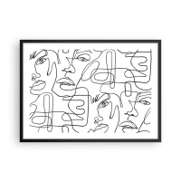 Affiche dans un cadre noir - Poster - Un dessin minimaliste d'un visage avec des lignes sur un fond clair. - 70x50cm - Dans des émotions enchevêtrées - Décoration murale moderne pour le salon et la chambre ARTTOR