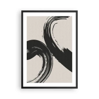 Affiche dans un cadre noir - Poster - Coups de pinceau dynamiques sur fond beige - 50x70cm - Balayage circulaire - Décoration murale moderne pour le salon et la chambre ARTTOR