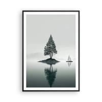 Affiche dans un cadre noir - Poster - Un arbre solitaire sur une île avec un reflet dans l'eau - 50x70cm - Un rêve somnolent - Décoration murale moderne pour le salon et la chambre ARTTOR