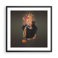 Affiche dans un cadre noir - Poster - Femme - fleur - 50x50 cm