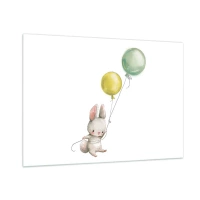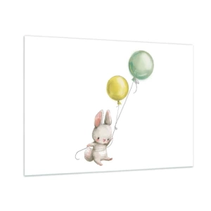Impression sur verre - Image sur verre - Un lapin tenant deux ballons - 100x70cm - Moi aussi je vole! - Décoration murale moderne pour le salon et la chambre ARTTOR