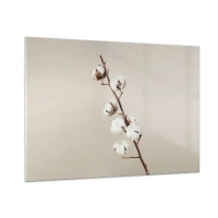 Impression sur verre - Image sur verre - Un brin de coton sur un fond clair et minimaliste - 100x70cm - A la source de la douceur - Décoration murale moderne pour le salon et la chambre ARTTOR
