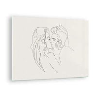 Impression sur verre - Image sur verre - Un baiser sensuel d'un couple dans la ligne de contour - 70x50cm - Enlacé de sentiment - Décoration murale moderne pour le salon et la chambre ARTTOR