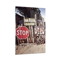 Impression sur verre - Image sur verre - Clôture en bois avec panneaux et roues vintage - 50x70cm - Et le temps s'est arrêté - Décoration murale moderne pour le salon et la chambre ARTTOR