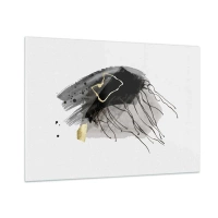 Impression sur verre - Image sur verre - Composition abstraite de noir et d'or sur fond blanc - 100x70cm - En noir et en or - Décoration murale moderne pour le salon et la chambre ARTTOR