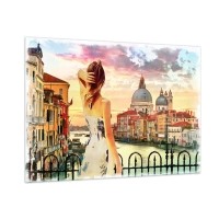 Impression sur verre - Image sur verre - Une femme admire la vue de Venise au coucher du soleil. - 100x70cm - Pour une aventure c'est uniquement dans ... - Décoration murale moderne pour le salon et la chambre ARTTOR