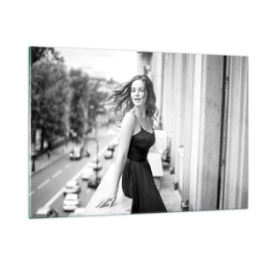 Impression sur verre - Image sur verre - Une femme en robe noire sur un balcon de style parisien - 120x80cm - Certainement un Parisien - Décoration murale moderne pour le salon et la chambre ARTTOR