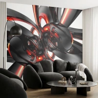 Papier Peint Photo Premium Sand - Formes noires abstraites avec des accents rouges - 100x70cm - Mouvement de graphite et rouge - Décoration murale moderne pour le salon et la chambre ARTTOR