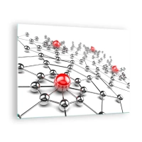 Impression sur verre - Image sur verre - Réseau moléculaire argenté avec des accents rouges - 70x50cm - Toile argentée - Décoration murale moderne pour le salon et la chambre ARTTOR