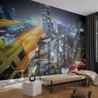 Papier Peint Photo Standard Eco - Panorama de la ville la nuit avec des gratte-ciel illuminés - 100x70cm - Un miracle dans le désert - Décoration murale moderne pour le salon et la chambre ARTTOR