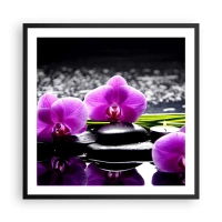Impression sur verre - Image sur verre - Orchidées violettes avec des pierres et des bougies sur un fond d'eau - 100x70cm - Se noyer dans la paix et la tranquillité - Décoration murale moderne pour le salon et la chambre ARTTOR