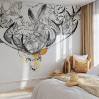 Papier Peint Autocollant Deluxe Sticker - Corne d'abondance - Abstraction, Cerf, Graphique - 350x256 cm