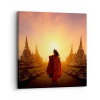 Horloge murale - Pendule murale - Un moine parmi les temples au coucher du soleil - 30x30cm - En paix pour l'éternité - Décoration murale moderne pour le salon et la chambre ARTTOR