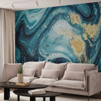 Papier Peint Photo Standard Eco - Composition abstraite dans les tons bleu et or - 100x70cm - Vortex bleu - Décoration murale moderne pour le salon et la chambre ARTTOR