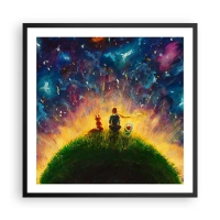 Impression sur toile - Image sur toile - Personnages sur une colline verdoyante entourée d'un ciel étoilé - 100x70cm - Amour et amitié - le monde entier - Décoration murale moderne pour le salon et la chambre ARTTOR