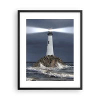 Impression sur verre - Image sur verre - Un phare sur un rocher au milieu des vagues agitées la nuit - 120x80cm - I… i… ici ! - Décoration murale moderne pour le salon et la chambre ARTTOR